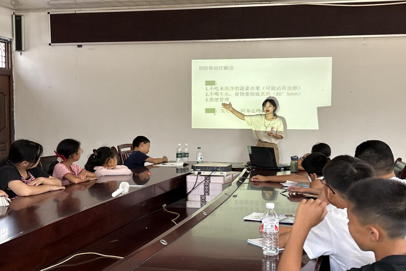 为提升乡村地区儿童寄生虫防护意识,培养科学卫生的生活习惯,7月17日,英国365集团“乡伴童心,乡伴童行”三下乡社会实践队于在桑植县空壳树乡虎形村开展了寄生虫专题教育课。实践队成员董事世佳、李谨辰担任授课老师。