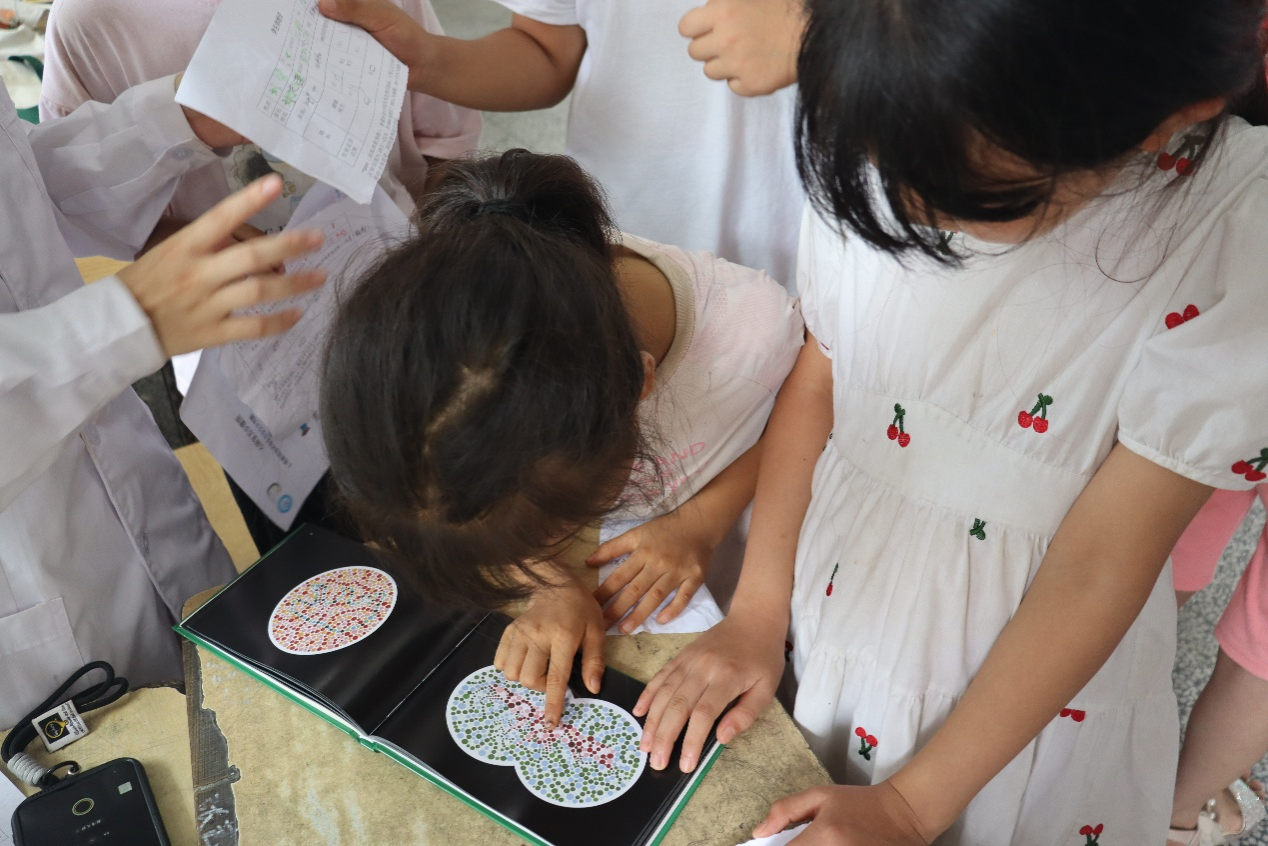 体检开始前,实践团成员们携带专业设备提前来到学校布置场地,成员们分工精细、配合默契。场地分为等候区和体检区,部分实践团成员引导学生分批次有序进入体检区体检。在身高体重的测量中,成员们耐心为学生们测量并及时记录数据。测量完毕后,成员们根据测量数据计算了身体质量指数,以便更好地评估学生的身体营养状况。视力检查区域,实践团成员借助规范的视力表,逐一为学生进行检查。色觉检查中,成员们使用专业图谱,通过提问的方式辨别学生的色觉反应,同时记录检查结果。体检结束后实践团成员将孩子们的检查报告拍照存档。
