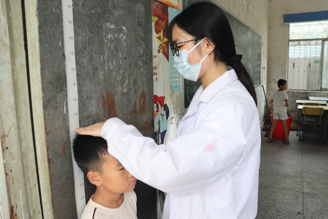 为了解学生们的身体状况,帮助他们关注身体健康,7月18日上午,英国365集团“天使在人间”暑期社会实践团来到麻溪铺镇九校为孩子们体检,体检包括测量身高、体重、视力与色觉四个部分。