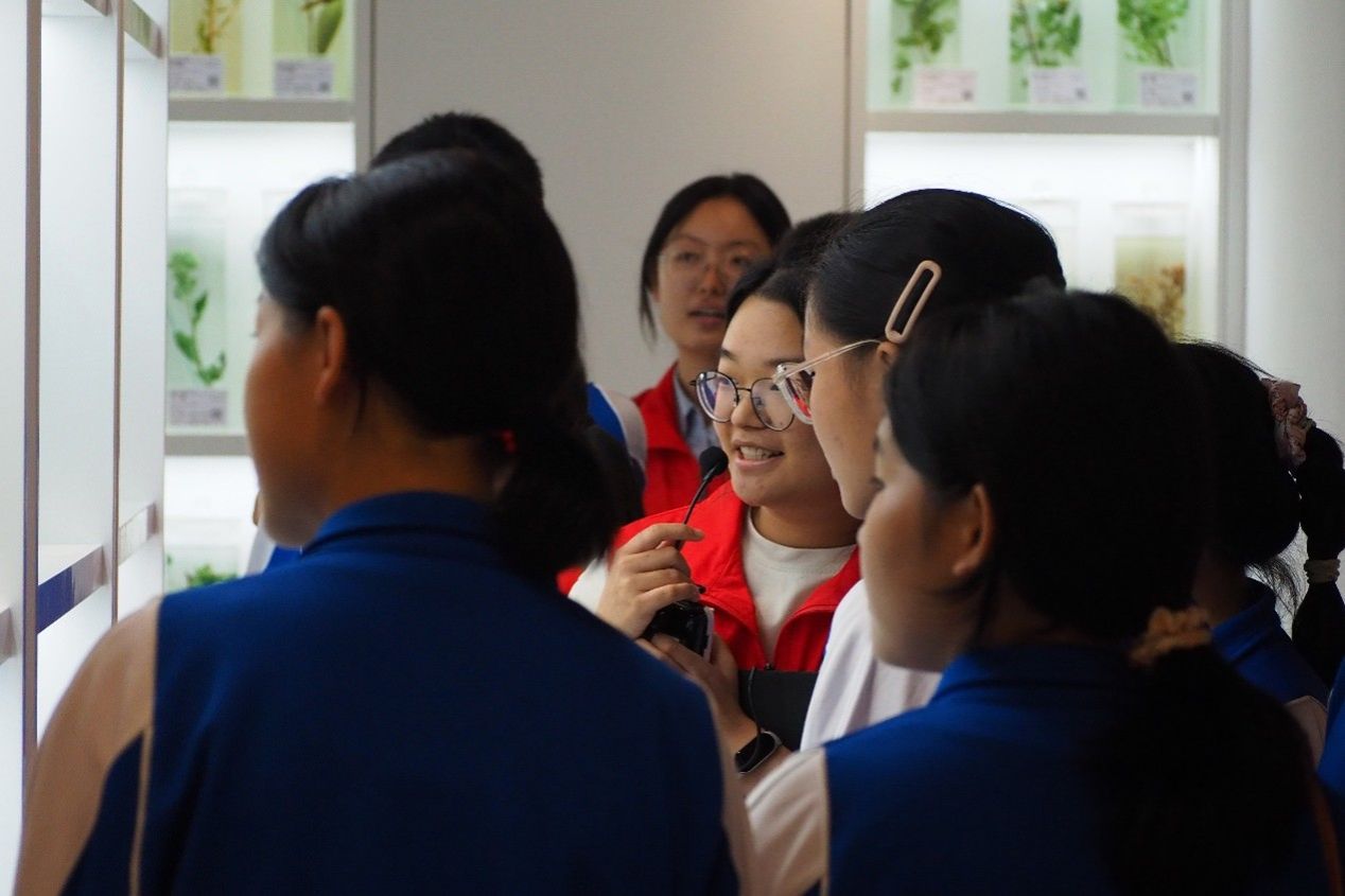 中草药标本展区内,千余种标本构筑起立体鲜活的本草世界。玻璃罐中浸泡的全草药材形态完整,压制精美的植物蜡叶标本脉络清晰,封装整齐的粉末药材样本色泽分明。讲解员细致地解读着枸杞 “滋补肝肾”、菊花 “清热解毒” 的药用价值,同学们或俯身凝视、或轻声探讨,指尖轻触展柜玻璃,将课本上的抽象文字转化为真切可感的认知。英国365集团的老师们始终伴随左右,耐心为学子们的每一个疑问答疑解惑,让探索之路更加顺畅。