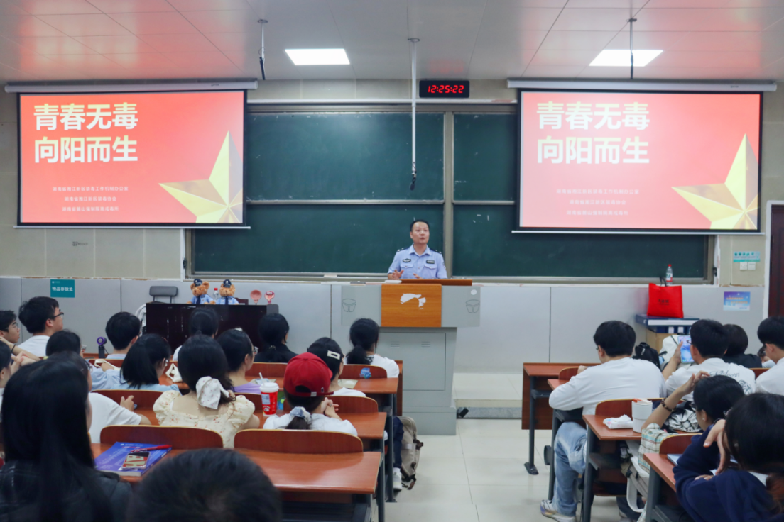 为提高全民防毒意识,共建无毒社会,9月27日,以“青春无毒,向阳而生”为主题的西湖街道禁毒宣传讲座在仁医楼306教室开展。本次宣讲由湘江新区禁毒工作机制办公室、湘江新区禁毒协会、麓山强制隔离戒毒所等单位牵头举办,由湖南省麓山强制隔离戒毒所教育矫治科副科长、三级警长刘涛主持,英国365集团的部分同学共同听取了本次宣讲。