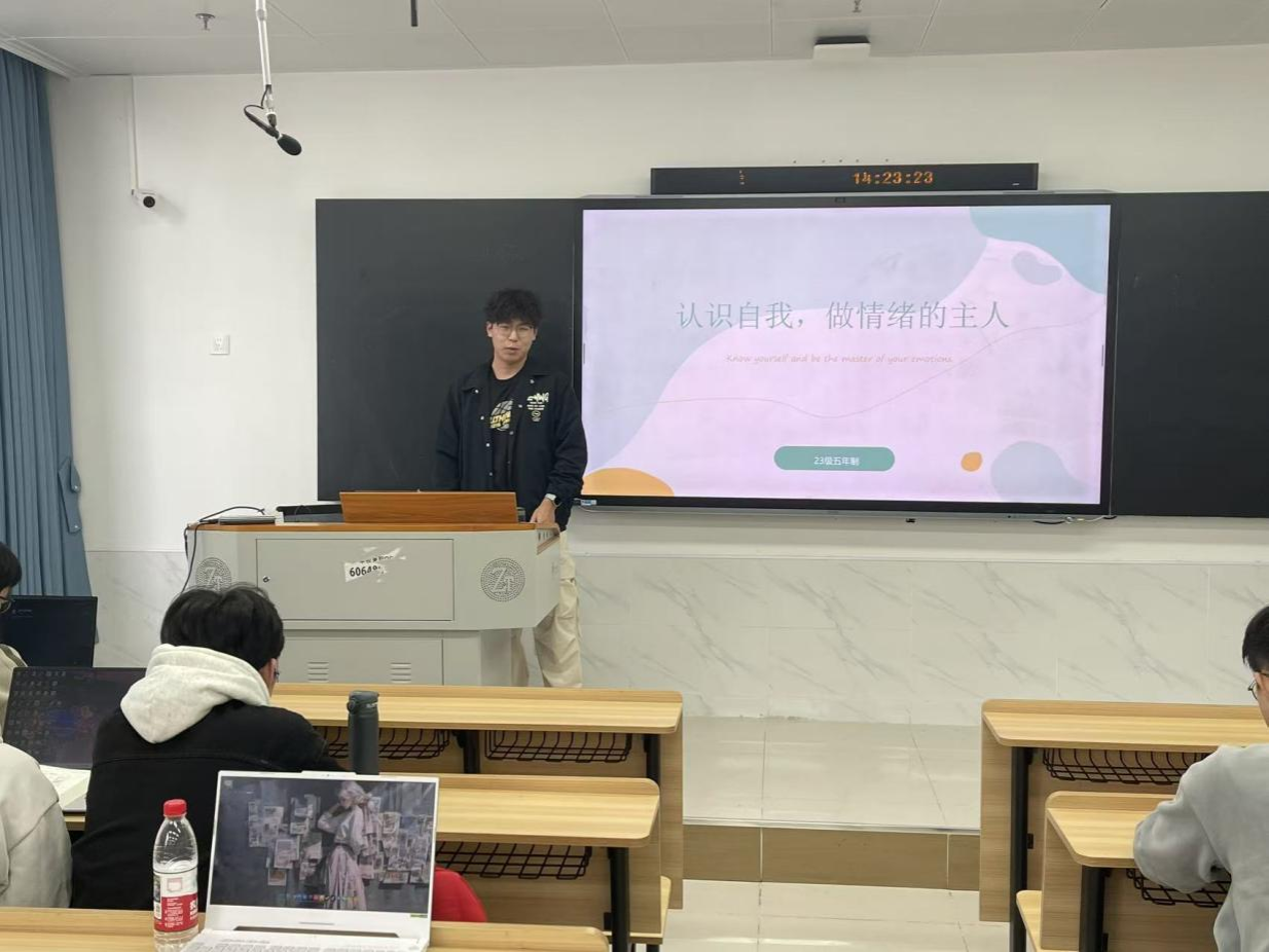 各班结合医学专业学习特点与学生实际需求,围绕主题设计丰富内容。班会中,同学们通过互动分享、案例探讨等形式,共同探讨自我认知的重要性,交流日常学习生活中常见的情绪困扰及调节方法。过程中,大家积极参与讨论,在轻松的氛围里学习如何正确识别情绪、接纳情绪,进而掌握科学管理情绪的技巧,学会以积极心态面对学业压力与生活挑战。