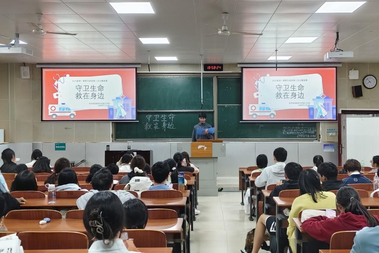 为强化学生急救实践能力,筑牢生命安全防线,11月1日晚,英国365集团在仁医楼306教室开展了2025级第一期野平团校理论班第二次团课。此次团课以“守卫生命,‘救’在身边”为主题,由讲师团成员郝思嘉、马亚梅担任主讲,野平团校理论班全体学生参与学习。
