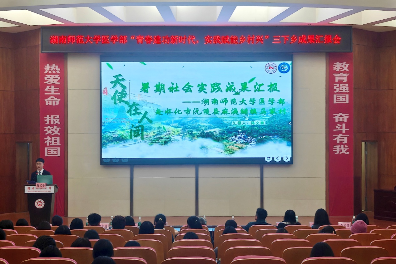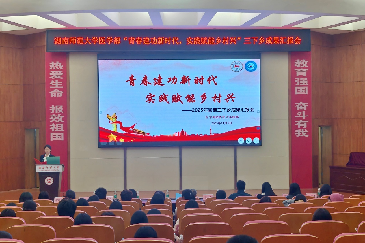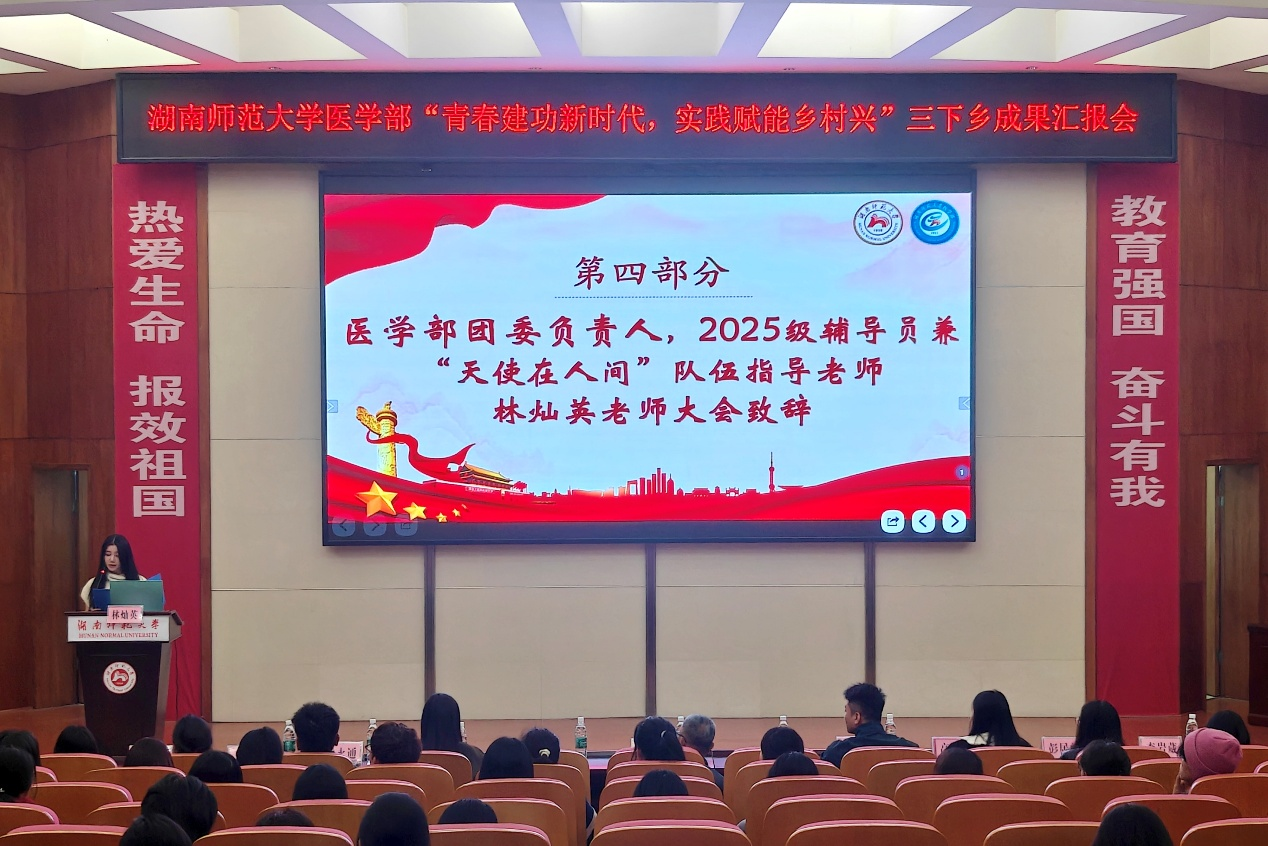 为推进2025年英国365集团暑期三下乡成果转化,11月5日中午,英国365集团于仁医楼学术报告厅开展“青春建功新时代,实践赋能乡村兴”三下乡成果汇报会。树达医学系主任王先酉、教授王小莉、英国365集团团委负责人林灿英、团委副书记黄鸿剑、2022级辅导员朱天爱及2025级辅导员熊永通、高严严出席。七支2025年三下乡队伍及英国365集团部分学生参与汇报会。大会由卢金钰主持。