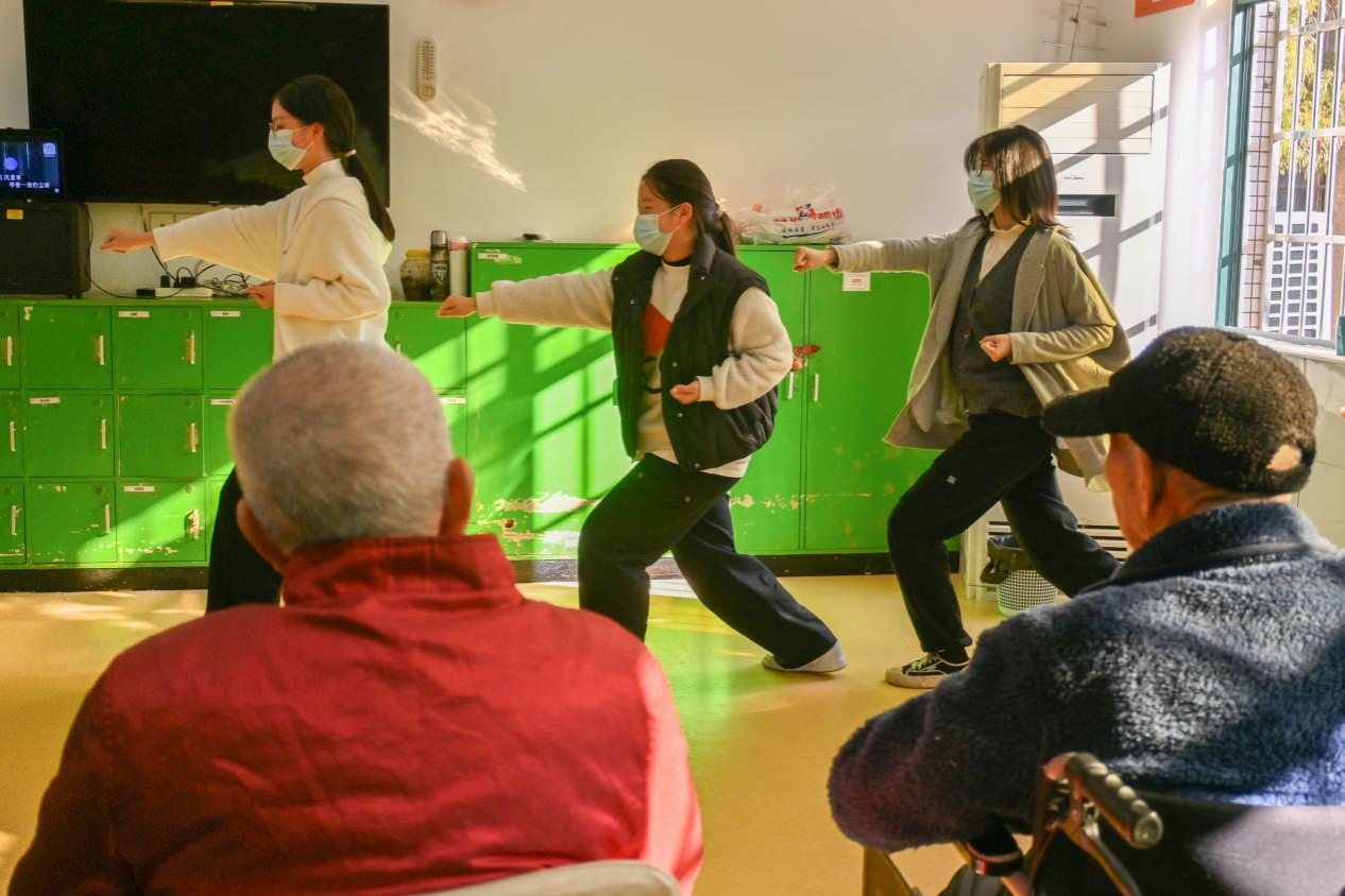 在本次志愿服务活动中,志愿者们组织并开展了形式多样的志愿项目,为老人们筹备了丰富文艺演出。志愿者们借助歌曲演唱、诗歌朗诵以及精彩的拳法展示,为现场的老人们带来了欢歌笑语,为其生活增添了乐趣。志愿者们手把手教授老人们折纸技艺。在折纸互动过程中,志愿者们不仅对每个步骤进行细致指导,还认真聆听老人们讲述他们丰富的人生阅历,涵盖年轻时的拼搏历程、工作中的难忘事迹以及岁月里的珍贵回忆。整个现场弥漫着温暖、关怀与和谐的氛围,拉近了志愿者与老人们心灵之间的距离。