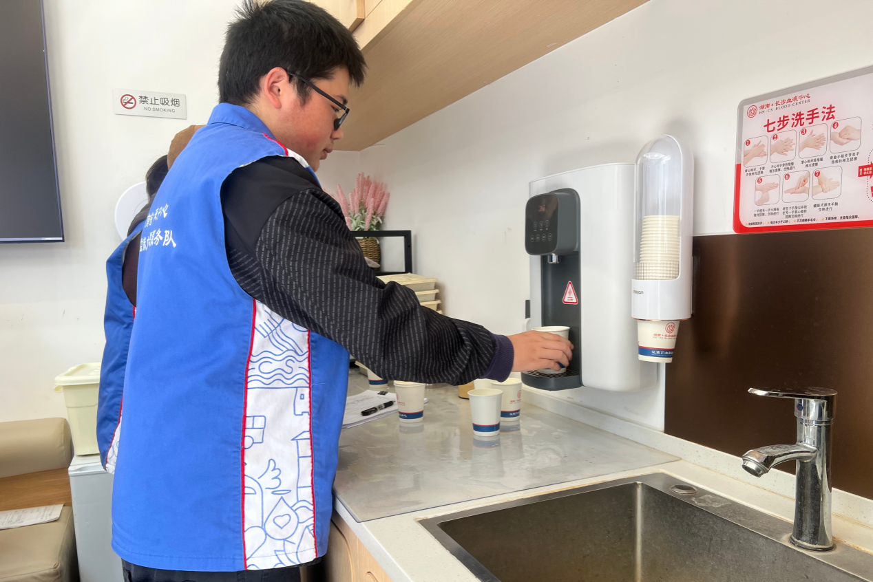志愿者们提前接受岗前专项培训,以确保服务专业规范、献血流程安全高效。在献血者到来前,志愿者们便已完成环境整理工作,包括更换洁净床单、打扫卫生等,确保服务区域整洁舒适。献血过程中,志愿者们为献血者递上温水,协助准备葡萄糖口服液,并引导他们完成献血前的必要准备工作,如测量血压、填写个人信息表格等。在献血者休息观察期间,志愿者们时刻关注其状态,及时提供帮助。