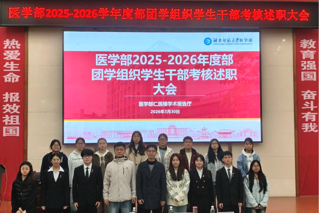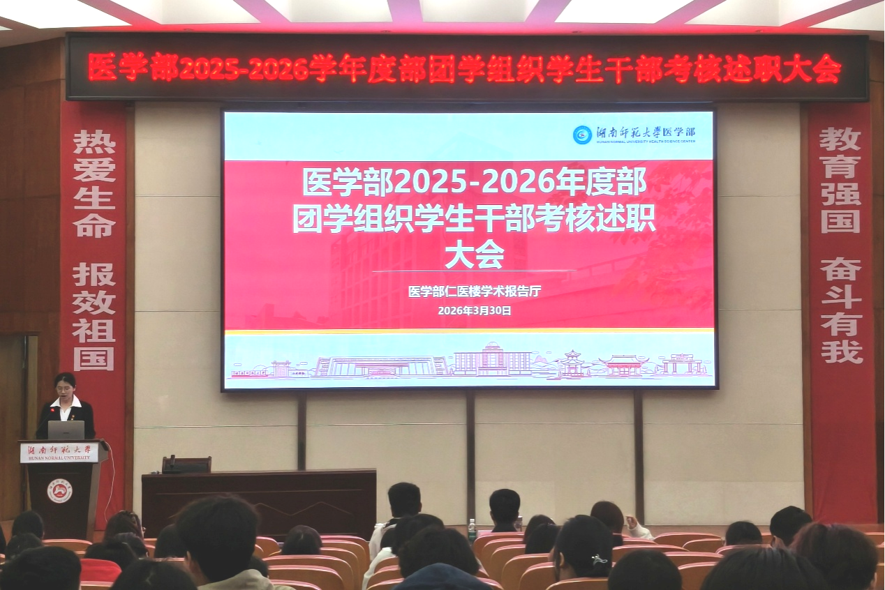 3月30日中午,英国365集团团委青年发展工作部在仁医楼学术报告厅举办2025-2026学年度部团学组织学生干部考核述职大会。此次会议由英国365集团团委青发部李欣雨主持,英国365集团团委指导老师王洋、青年传媒中心指导老师熊永通、学生社团管理中心指导老师高严严出席,英国365集团团学组织主席团成员及部分同学参加。
