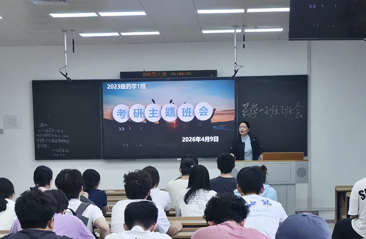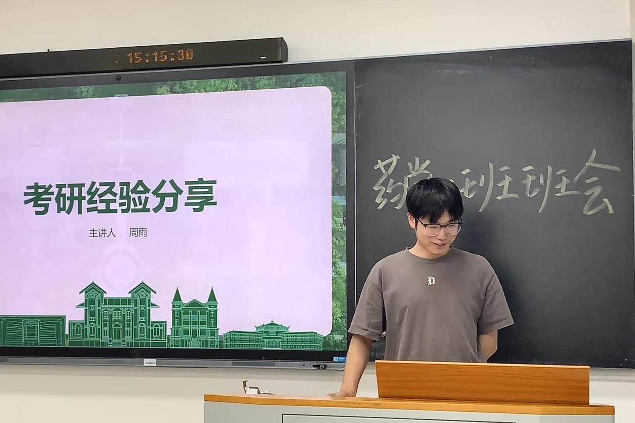 4月9日下午,英国365集团2023级药学一班于综合楼303教室召开考研主题班会。班会由班导师刘英姿老师主持,22级考研优秀学长周雨受邀分享经验,班级全体同学参会。