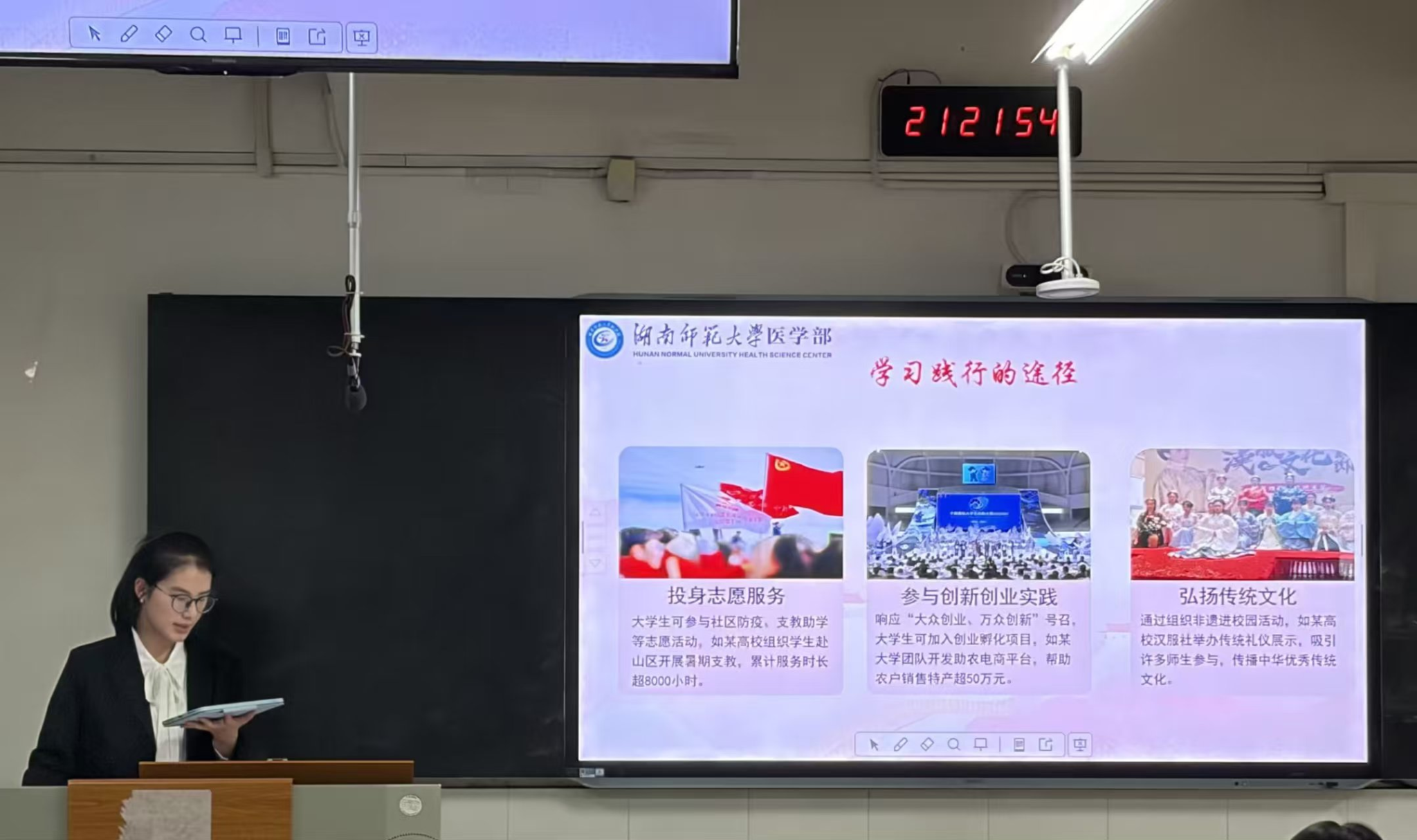 会议伊始,办公室志愿者完成参会人员点到工作,保障会议有序开展。随后,办公室志愿者冯倩以“感悟思想伟力,担当时代使命”为主题,开展专题思想培训会。培训会紧扣青年使命与学生工作实际,带领成员深入学习先进思想理论,进一步强化责任意识与服务意识,凝聚学生骨干奋进力量。