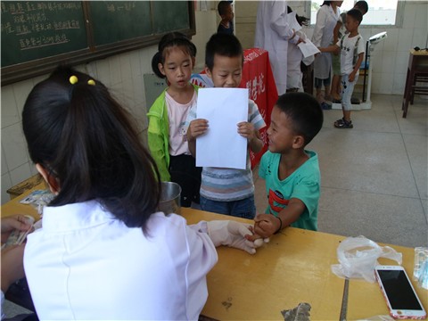 此次体检人数多、时间紧、任务重,针对此情况,医学院社联三下乡队员于前几天就把体检相关注意事项告知家长,同时对参加体检的学生进行科学分组编写学号,并积极协调、配合医护人员的工作,整个体检过程规范有序。