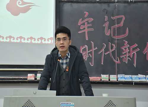 在此次团课开始,张明明阐述了要将政治理论学习与专业知识、个人价值等相结合,青年学子要立志高远,勇担新使命。团课以解读关键词——“新”为主线,向大家解读了什么是“新时代”、“新征程”、“新的伟大工程”、“新的发展理念”等,他表示:“中国特色社会主义进入新时代,时代转变的同时也赋予了我们先进青年新使命”。随后将党的十九大精神与中华优秀传统文化相结合,告诫青年学子做到文化自觉、坚持文化自信、实现文化自强。最后,他以“当今青年一代既是民族复兴、现代化强国的见证者、享受者,更是建设者、担当者。时代赋予了你们新的历史使命,青年学子要树立坚定的理想信念、立志高远、勇立潮头,在行动中践行时代赋予的新使命。”结尾,鼓励、鞭策所有参与课堂的同学们。