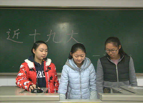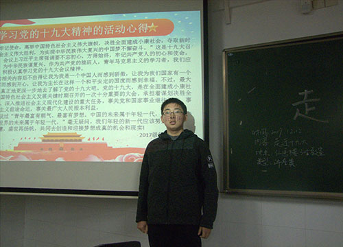 12月12日下午,我院学生会组织召开走近十九大讲座,学生会成员夏婷婷、由宁、李小雪主持讲座。