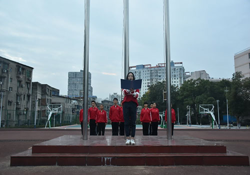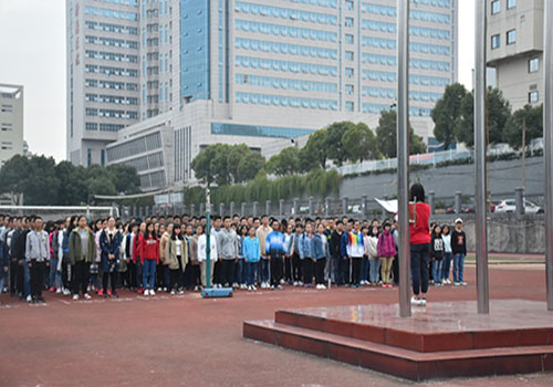 11月6日清晨,医学院组织17级新生在田径场举行升旗仪式,2016级学生代表张宇婷以及2017级新生代表戴承明发表演讲。