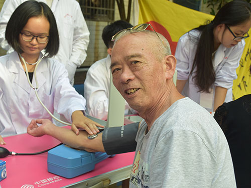 9 月 23 日上午,我院青年志愿者来到岳麓区先锋社区,开展"爱之翼,守护健康在行动"义诊活动。