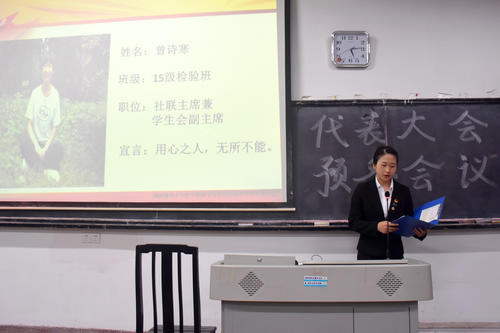 此次会议的重点在于第三项与第四项内容。在第三项内容——第十五届团学委员候选人发表竞职演讲中,各团学委员候选人依次走上演讲台发表竞职演讲,演讲的内容围绕候选人于团学系统中的历练,想竞选团学委员的原因与对团学工作的展望而展开。各团学委员候选人均在演讲中表达自身对团学系统的归属感,对团学工作的热爱,对团学系统未来发展的热情,他们的慷慨陈词,引得台下代表们掌声连连。因此,在第四项内容——选举团学委员中,各团学委员候选人均通过了选举,顺利当选下一届团学委员。