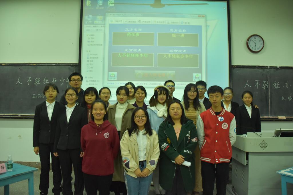 此次辩论赛的正方为18级药学班,反方为18级临床一班,此次辩题正方为“人不轻狂枉少年”,反方为“人不轻狂亦少年”。在主持人王茜宣布了比赛规则和辩论环节后,双方一辩分别陈述自己观点。
