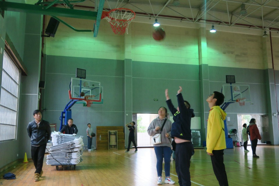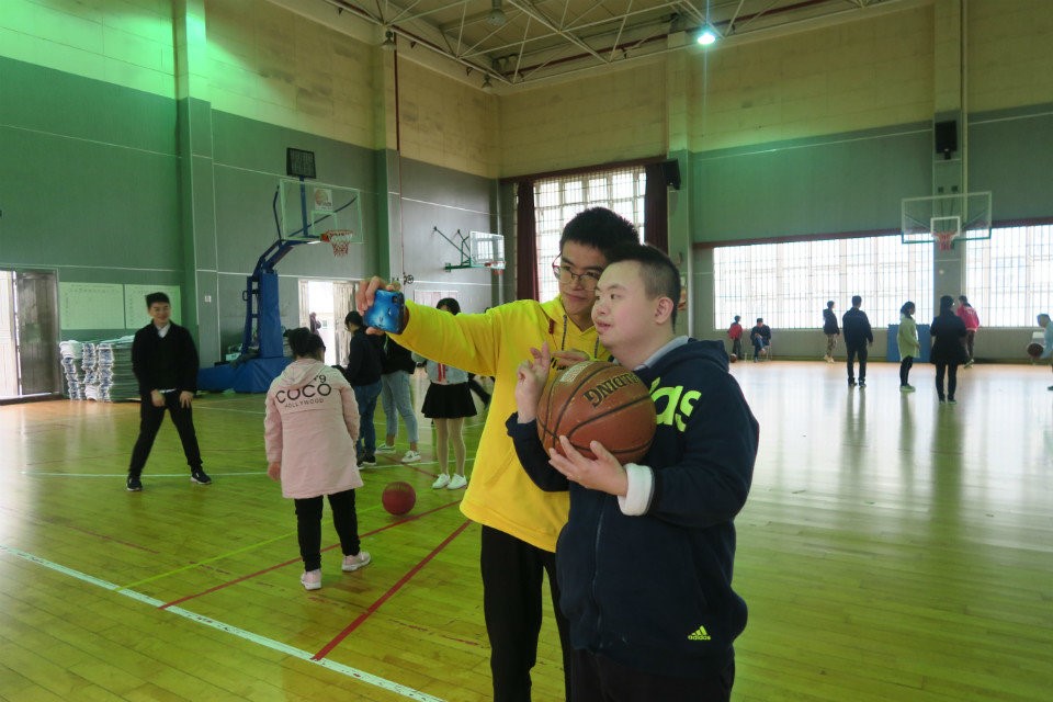 首先进行的是活动准备工作,教练带领唐氏宝宝们做热身运动,以减少接下来运动过程中的损伤。随后,每两位志愿者带领一位唐氏宝宝,一对一传授篮球技巧,从理论到实践,引导唐氏宝宝初步认识篮球运动。考虑到唐氏宝宝身体的特殊性,志愿者们关注唐氏宝宝的身体状况,控制运动时间,逐渐降低运动强度。休息时间,唐氏宝宝为大家表演即兴舞蹈,以表达对志愿者们的感谢。在志愿者们的帮助下,唐氏宝宝们进行了一场篮球表演赛,轮流上场在运球,投篮两个部分展示篮球学习成果,获得陪同老师的称赞。活动最后,志愿者们合影留念。