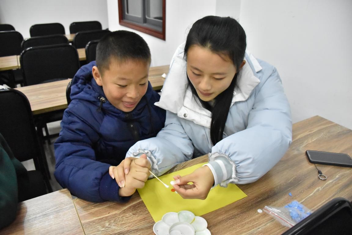 此次活动的主要内容是陪伴唐氏宝宝完成绘画课并且给予他们精神慰藉。志愿者到达胜家雅苑小区后,唐氏宝宝班的老师安排志愿者与孩子们聊聊天、谈谈心,拉近了彼此之间的距离。随后,志愿者在负责人的分配下对自己负责的孩子开展一对一的辅导。