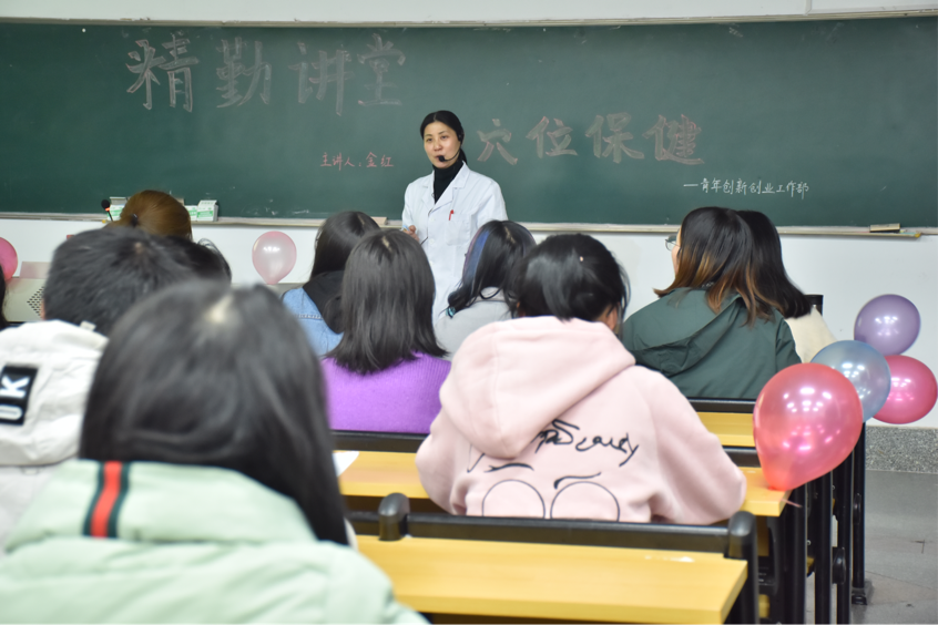 3月15日晚7点,由我院团委青年创新创业工作部主办的精勤讲堂之穴位保健讲座于勤医楼八教室举行。金红教授担任此次活动主讲人,我院16-18级学生参与此次活动。