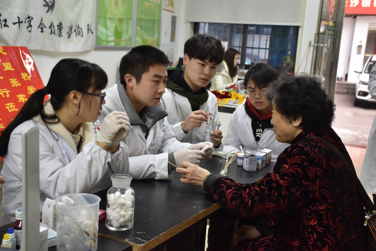 3月24日上午,由我院青年志愿者工作部举办的“爱之翼,守护健康在行动”志愿者活动于廖家湾社区展开。我院8名志愿者走进廖家湾社区,为附近居民进行义诊。