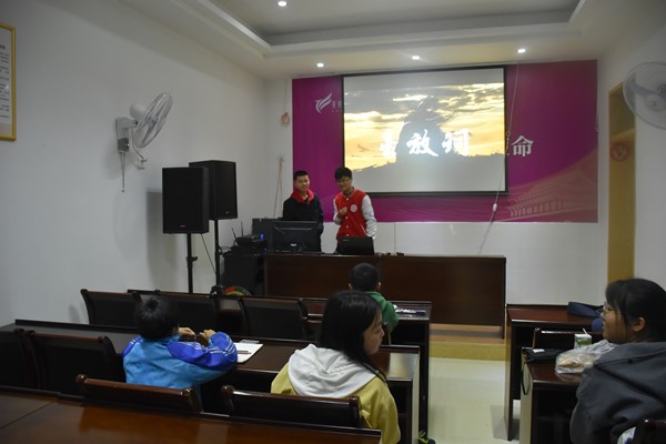 此次活动的主要内容是介绍豪放派、婉约派诗人身平事迹及赏析他们的名作。活动开始,志愿者与孩子们相互熟悉,他们相处十分融洽。孩子们被三位豪放派的诗人趣事吸引着,志愿者为孩子们有层次开启文化之旅,志愿者们与孩子首先一起深情朗诵了岳飞的诗,共同探讨苏轼的《念奴娇·赤壁怀古》一诗的内涵、思想感情,气象恢宏雄放的豪放派诗给孩子们留下深刻的印象。有的孩子被岳飞真挚的爱国之情感染,表示很敬佩他并要向他学习。而语言清新简美的婉约派诗,其细腻的情感让孩子们不能在短时间内感受到,但孩子们愿意以唱歌的形式去体验其内涵。