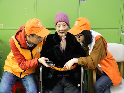 在互动环节,志愿者和老人们一起唱歌,握手,通过询问老人的姓名、年龄、兴趣爱好、年轻时的工作及家庭状况等来加强对老人的了解,并对自己的情况进行了介绍。期间,不少老人高龄导致听力下降,口齿不清,与志愿者交流存在困难,志愿者便与他们进行肢体上的交流。