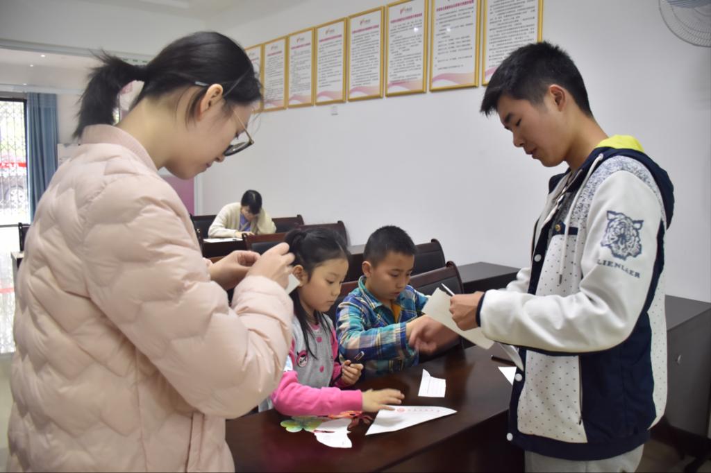 4月14日下午两点半,由我院青草园文学社主办的"清风化雨,国学永驻"志愿者活动于天凤社区公共服务中心开展,天凤社区的小朋友们参与此次活动。