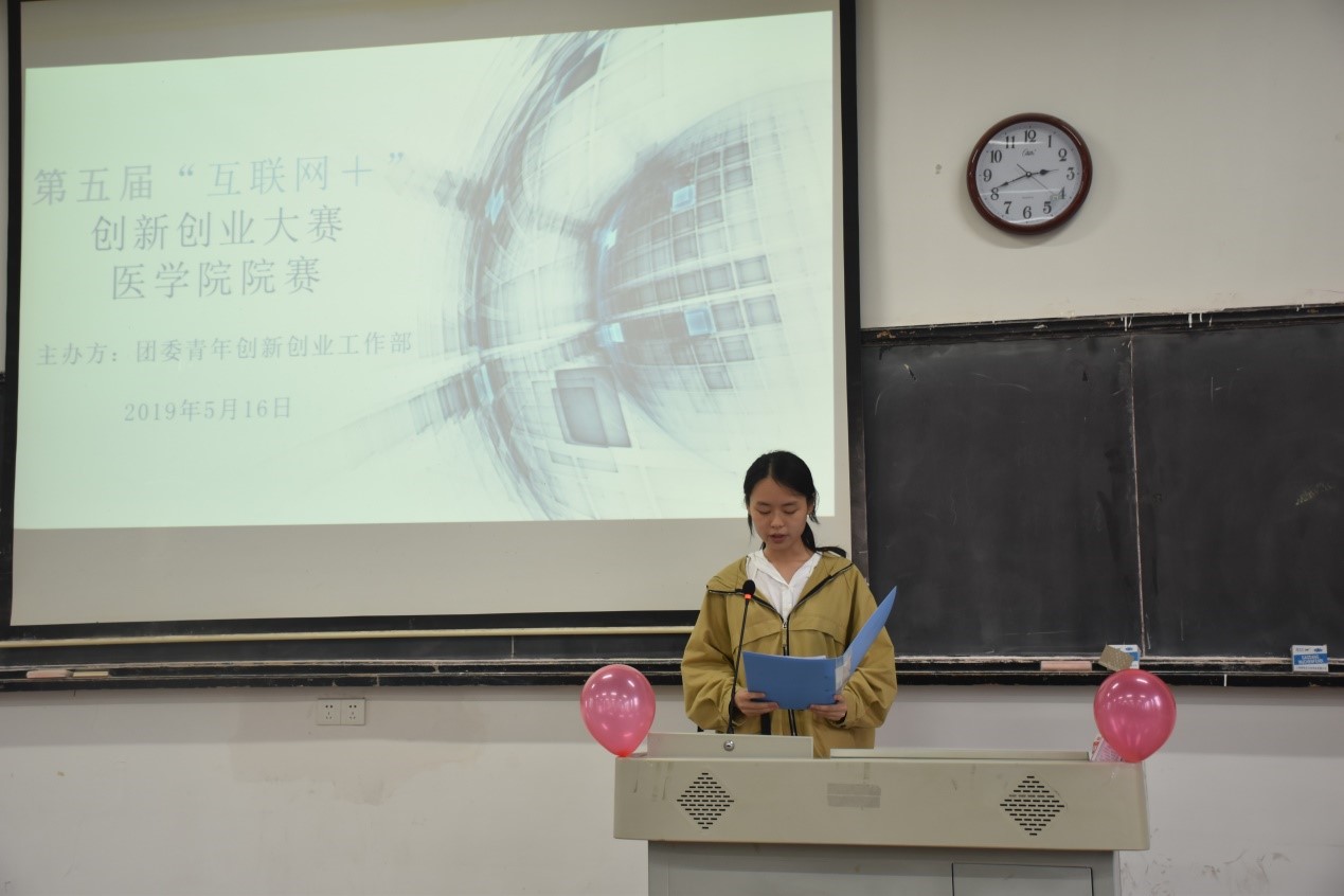 5月16日下午,由我院团委青年创新创业工作部举办的“互联网+”大学生创新创业大赛医学院院赛在勤医楼七教室开展。医学院团委学生副书记朱雯钰,医学院团委红十字会秘书长何健乐,青年传媒中心主任章作任,团委青年创新创业工作部前任部长仰智璇,上届金点子创新创意大赛校赛一等奖获得者谭俣宬等担任大赛评委。