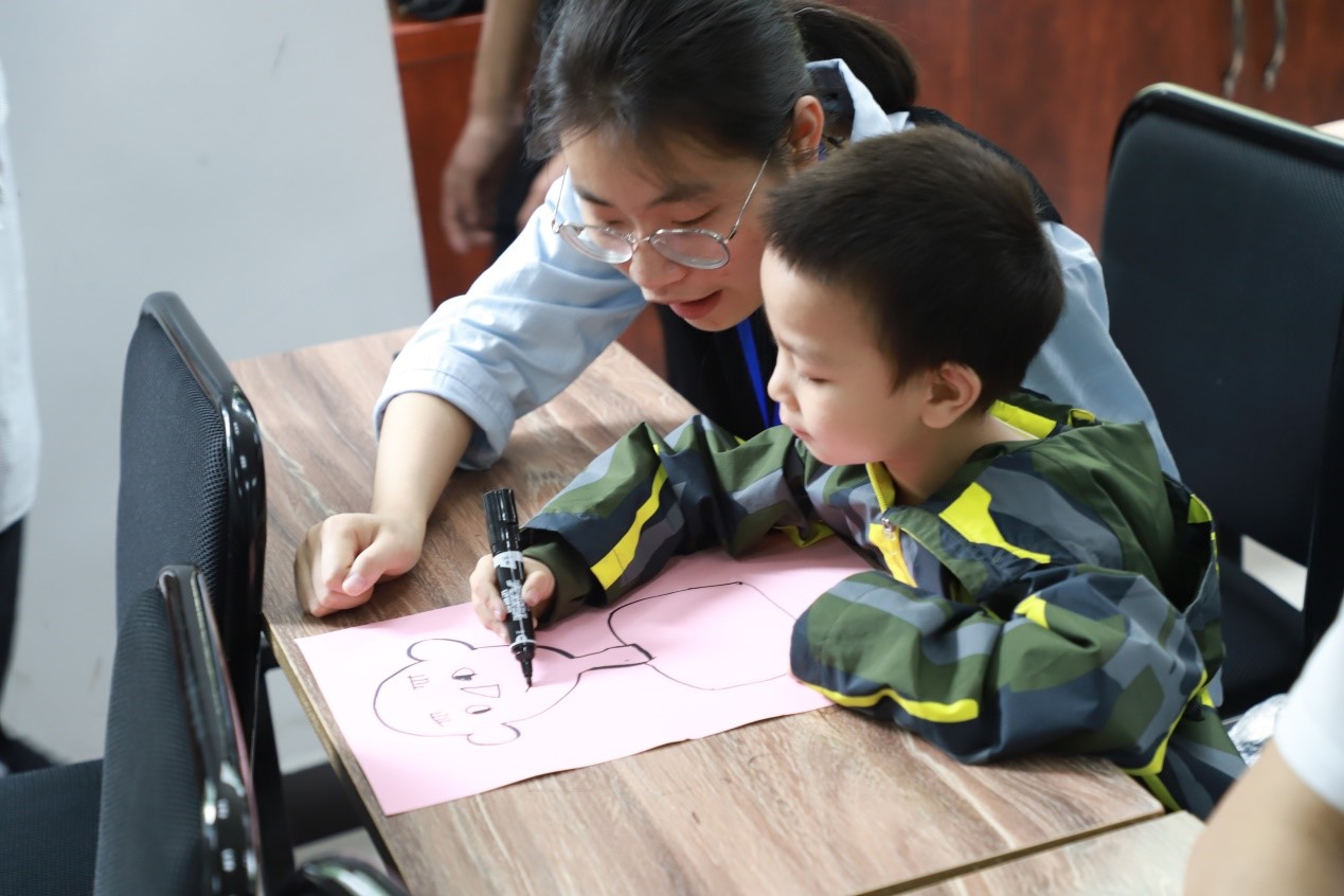 5月18日早,“非常1+1”绘画班志愿者活动于西湖街道咸嘉湖社区服务中心开展,该活动由我院青年志愿者工作部和咸嘉湖社区共同举办,我院共有16位志愿者参与此次活动,陪伴唐氏宝宝完成绘画课内容。