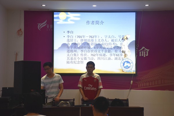 为确保活动的正常进行,活动开始前,负责人向合作社区事先了解情况并及时与孩子家长沟通。此次活动在社区会议厅开展,活动的开设课程是唐诗。志愿者们先用较为诙谐的语言导入,为孩子们介绍唐诗,并挑选了《咏鹅》、《静夜思》、《回乡偶书》等8首脍炙人口的作品进行介绍。在介绍《九月九日忆山东兄弟》一诗时,志愿者们还给孩子们讲述了有关重阳节的文化常识。这些诗篇通俗易懂,孩子们跟着志愿者们朗读几次后便能流利背诵。活动过程中,孩子们也积极地与志愿者们互动,通过开展小游戏的形式,进一步加深了孩子们对于唐诗的理解。