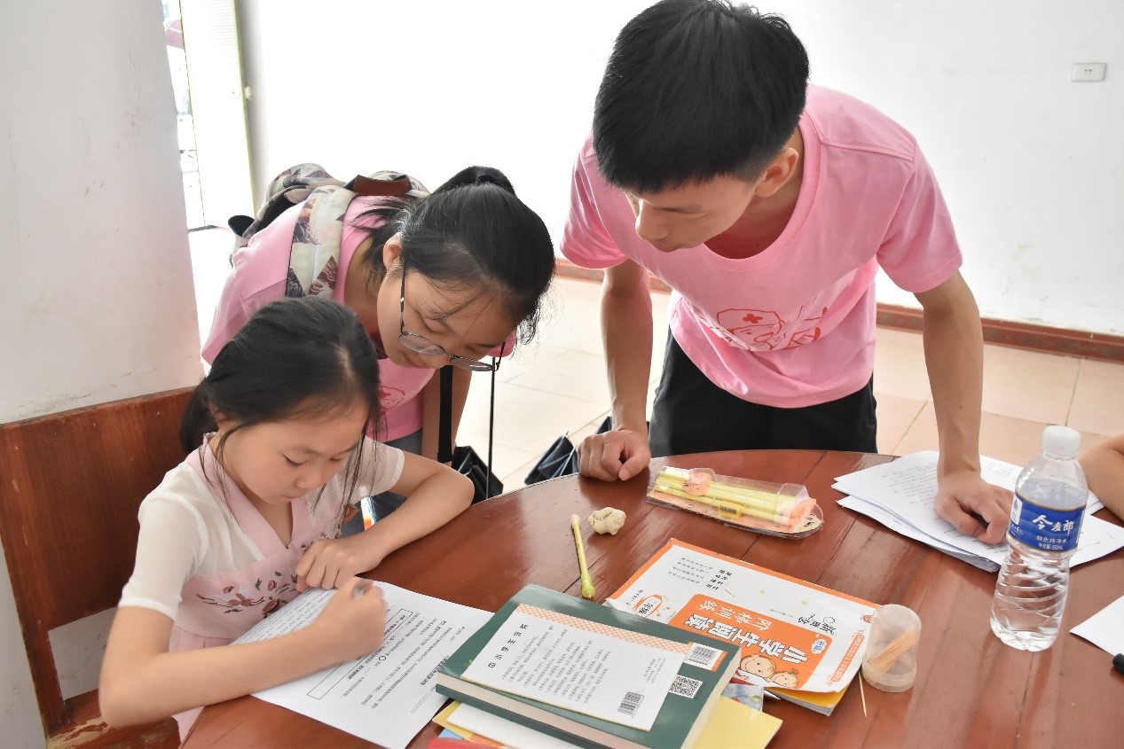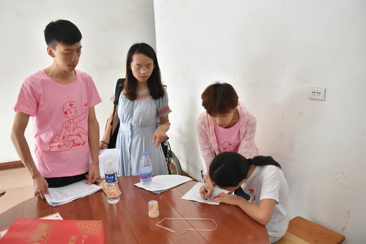 此次调研课题旨在对铜鼓县当地儿童的健康危险因素进行深入调查,为今后在学校开展健康教育提供依据,问卷涉及当地儿童对健康知识的了解问题,并且按年龄段分为六岁到八岁、九岁到十二岁两类。在调研过程中,杨益德亲自带领一组队员走访大塅镇住户,询问当地居民家中孩童情况并填写问卷,依实际情况给出相应建议。随后联系大塅镇几所教育培训机构进行交谈,商定好调研工作开展时间。当日下午,实践团成员随杨益德来到大塅镇教育培训机构,将问卷分发给对应年龄段的孩童并嘱咐其认真填写,孩童们都极力配合调研工作的开展。