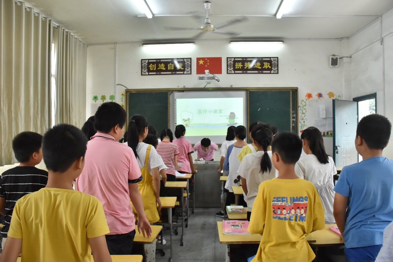 7月17日上午,我院“天使在人间”项目团队支教组为大塅镇中心小学二十二位学子开创了特色课程——医疗小课堂。课程内容精彩纷呈,不仅包含视力健康管理相关知识,还讲解了常见疾病的认识与预防等医疗知识。