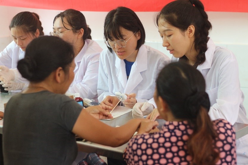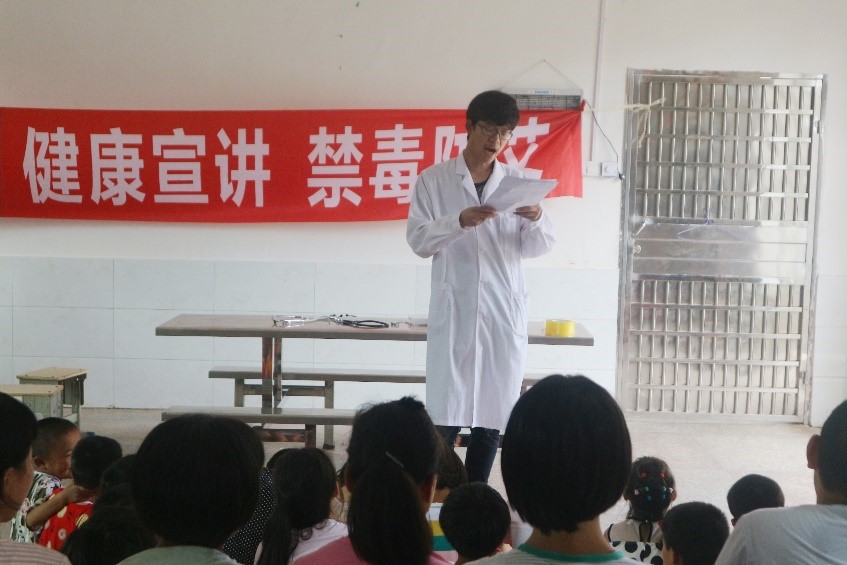 体检完成后,主讲人冯思薇和余梓豪开展了健康宣讲会。健康宣讲会的主要内容有高血压高血糖的原因和危害、日常疾病预防和防艾禁毒。