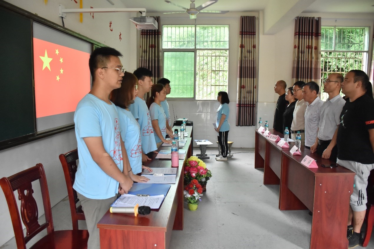 活动在全体起立奏唱国歌后正式拉开序幕,廖明勇宣读活动背景——中国共青团是聚集广大青年的群众性组织。随后对与会嘉宾作出介绍并表示欢迎,大塅镇中心小学书记朱春国为此次活动致开幕词。