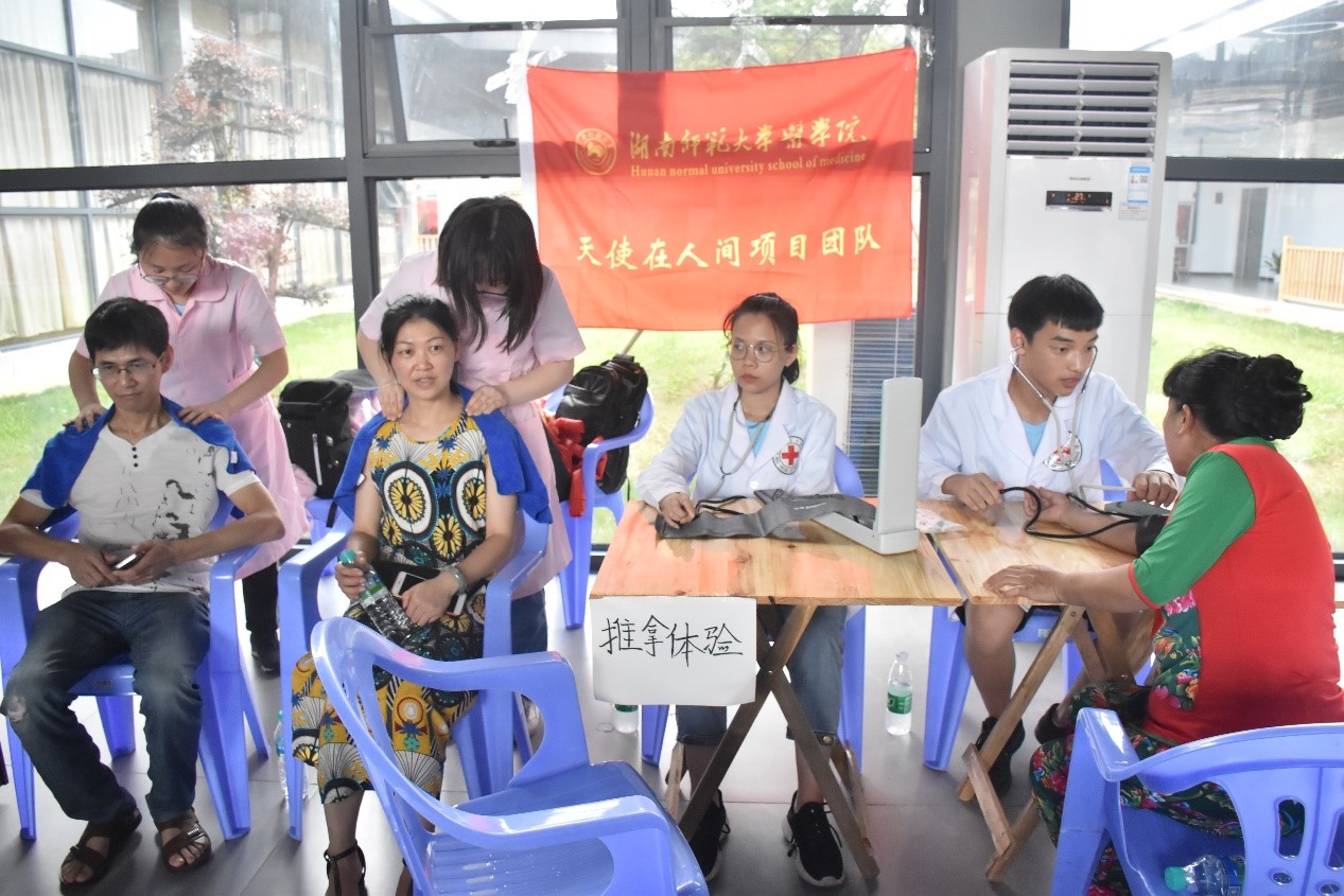 7月20日下午,我院“天使在人间”暑期社会实践团成员受铜鼓县大塅镇秋收起义沉浸式体验馆馆长邓敏所邀,于馆外广场参加铜鼓特色泼水节,且健康咨询组成员在体验馆内为民众开展血压测量、推拿体验等健康咨询服务。