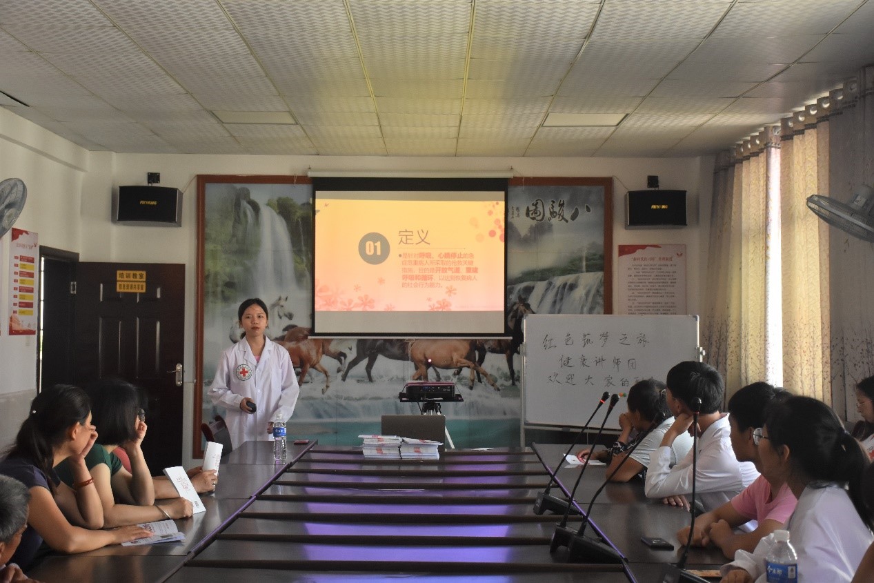 开展健康志愿服务是增进乡村居民健康、服务于基层人民、弘扬宣传健康知识的具体体现。为贯彻落实“健康扶贫”这一重要项目,我院“天使在人间”项目团队成员给大塅镇当地居民开展了第二场健康知识宣讲,并发放了健康生活方式宣传资料。此次宣讲主要面向中老年人,包括“急救知识宣讲”、“高血压和高血糖”、“关爱空巢老人”三个主题,分别由健康咨询队队长伦嘉琪、队员胡维维、高紫晴担任主讲人。宣讲过程中,老人们都听得十分认真,此次宣讲也得到了观众们的认可和称赞。