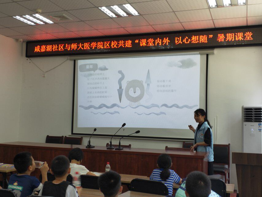 7月15日下午,我院红十字会赴长沙市暑期社会实践团于咸嘉湖社区开展支教活动。本次课堂教学的课程是音乐和绘画,意在培养小朋友们对于音乐和绘画的兴趣,从而在一定程度上提高他们在这方面的能力。