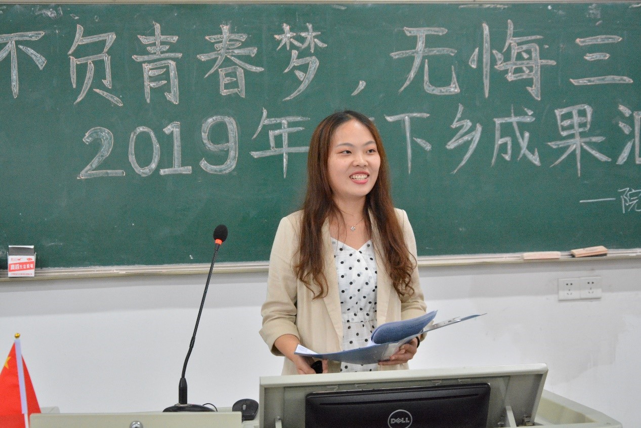 此次三下乡成果汇报大会,反映了我院一直秉承着“育人为本,育德为本”的教育方针,积极响应十九大的号召,开展暑期社会实践活动。而三下乡活动活动不仅提高了学生的社会实践能力,增强了学生的社会责任感和使命感,而且也鼓励学生为构建社会主义和谐社会、构建社会主义新农村,贡献自己的一份力量。
