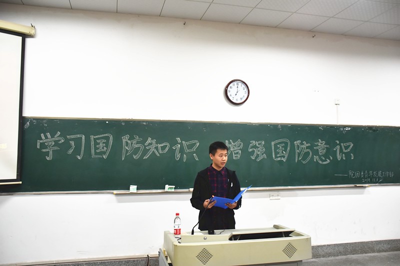 11月1日晚7点,我院团委青年发展部组织的“学习国防知识,增强国防意识”团课于勤医楼八教室开展。本次团课由2019级军训总教官龚钦钦担任主讲人,团委青年发展部干事谭博睿为主持人。2019级野平团校理论班全体成员参与此次团课。