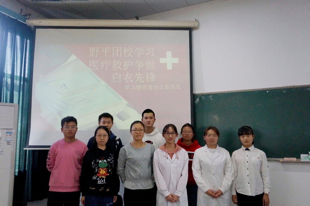 10月31日中午12点半,我院团委青年发展工作部于勤医楼八教室开展了以“学习医疗救护,争做白衣先锋”为主题的野平团校团课。知行合医健康知识宣讲团的成员贺玮、胡萍受邀作为此次团课的主讲人,技能班全体成员参与此次团课。