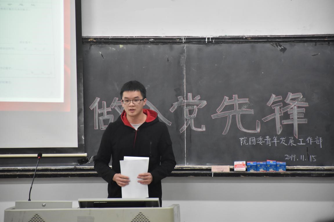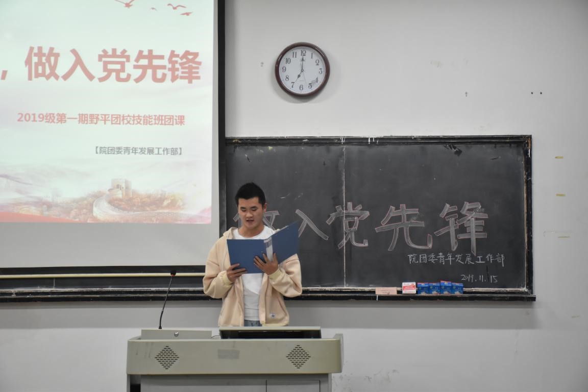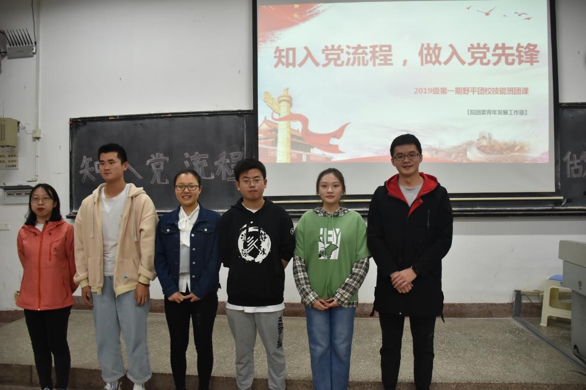 2019年11月15日19点,我院团委青年发展工作部于勤医楼7教室开展野平团校2019级第一期技能班“知入党流程,做入党先锋”团课,此次团课由伍湘豫主持,党办学生助理兰鸿翔和黄纪飚主讲,我院各系统的部分同学参与。