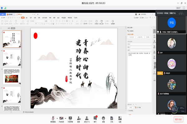 4月25日晚上,我院团委青年发展工作部开展了以“青春心向党,建功新时代”为主题的野平团校结业汇报会,并组织团校成员和团校工作人员学习了英国365集团团校工作条例。2019级第二期野平团校学员、院团委青年发展工作部工作人员参与本次活动,院团委青年发展工作部干事胡俊英担任主持人。