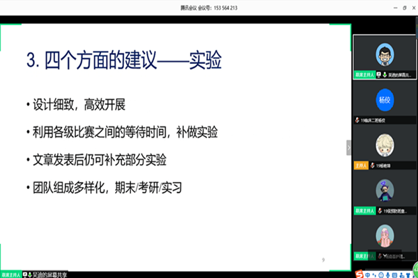 7月12日下午,我院团委青年创新创业工作部于线上举行了2020年第一次“挑战杯”竞赛专项培训。此次活动邀请了曾荣获第十六届“挑战杯”全国大学生课外学术科技作品竞赛二等奖的吴迪学长作为主讲人,我院17、18、19级部分学生参加此次活动。
