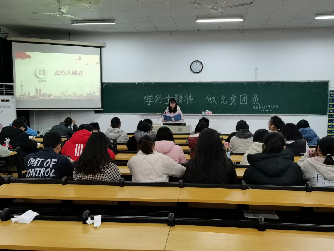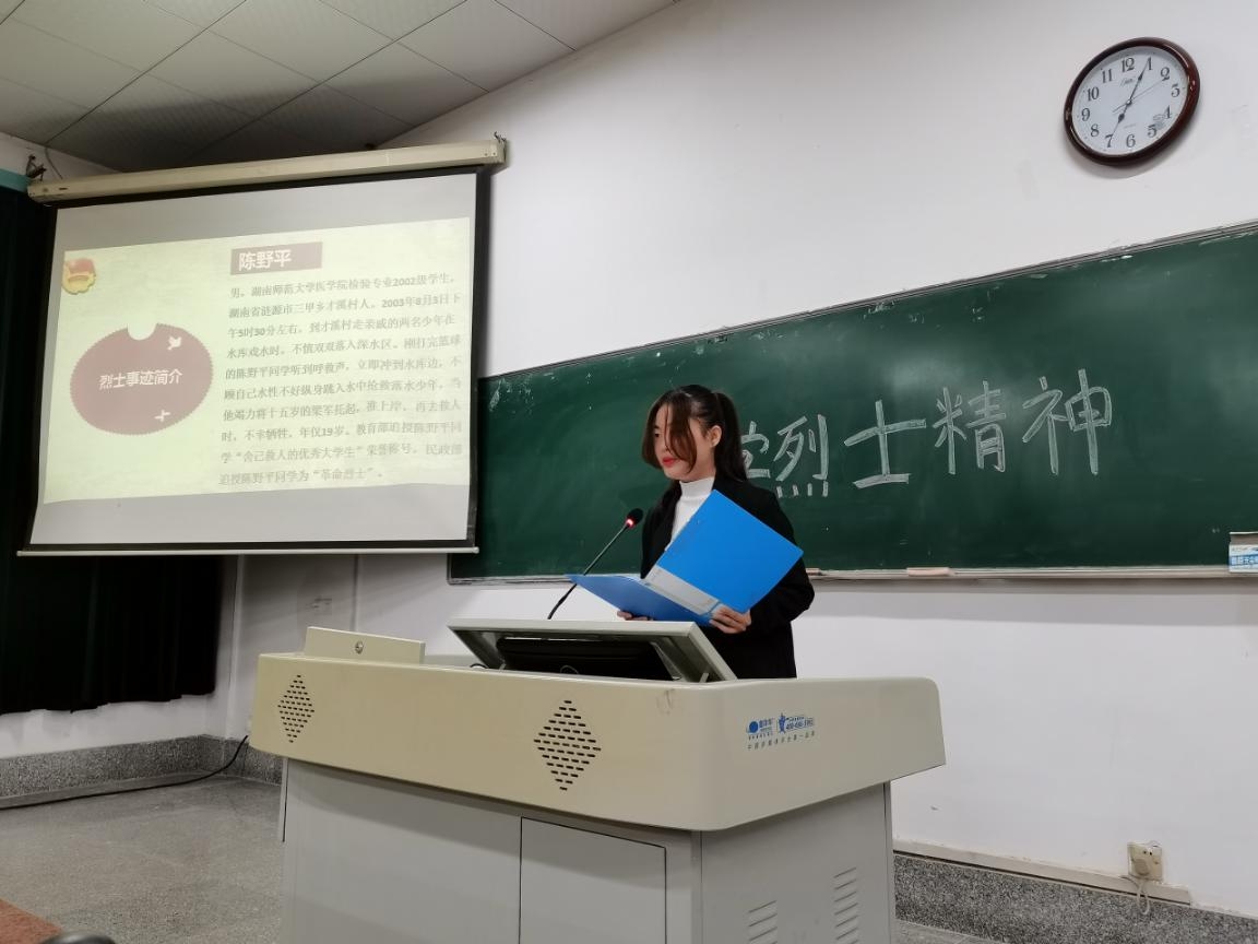 11月27日晚,由我院团委青年发展部组织的野平团校“学烈士精神,做优秀团员”主题团课于勤医楼八教室举行。本次团课由黎姿担任主持人,胡俊英担任主讲人。全体20级团校成员参加此次团课。