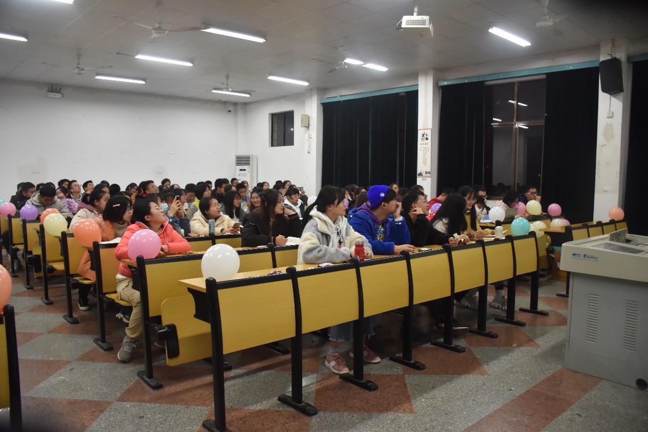 主持人刘溪小、严可涵简单地介绍活动背景之后,宣布此次表情包大赛正式开始。比赛选手以每组五人为单位依次讲述自己的创作灵感以及表情包背后的故事。参赛作品大多数是同学们在日常生活中的抓拍和截屏,无论是夸张的表情,还是人物与环境之间形成的错位,都是独具匠心,风趣幽默。比赛间隙,为了活跃赛场的气氛,刘溪小和严可涵邀请了部分观众上台参与趣味小游戏。有“不让气球落地”的运动小游戏,也有“听曲猜歌名”的文艺小游戏。随着趣味小游戏的进行,赛场的气氛逐渐升温,气氛到达高潮。最后平面设计部工作人员组织现场观众进行实时投票,选出此次比赛的获奖者,比赛落下帷幕。