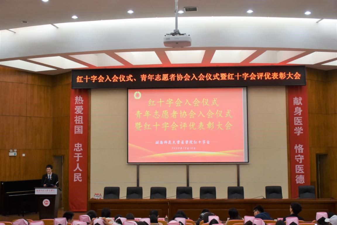12月10日中午,我院于学术报告厅召开红十字会入会仪式、青年志愿者协会入会仪式暨表彰大会。长沙市岳麓区红十字会志愿服务队负责人王吟,院团委书记张明明,院团委副书记林灿英,院青年传媒中心指老师罗宇涛,院学生会指导老师郜江洪,院团委学生副书记王纪海,院红十字会秘书长颜伟伦,出席此次会议。20级新生代表参与此次活动。