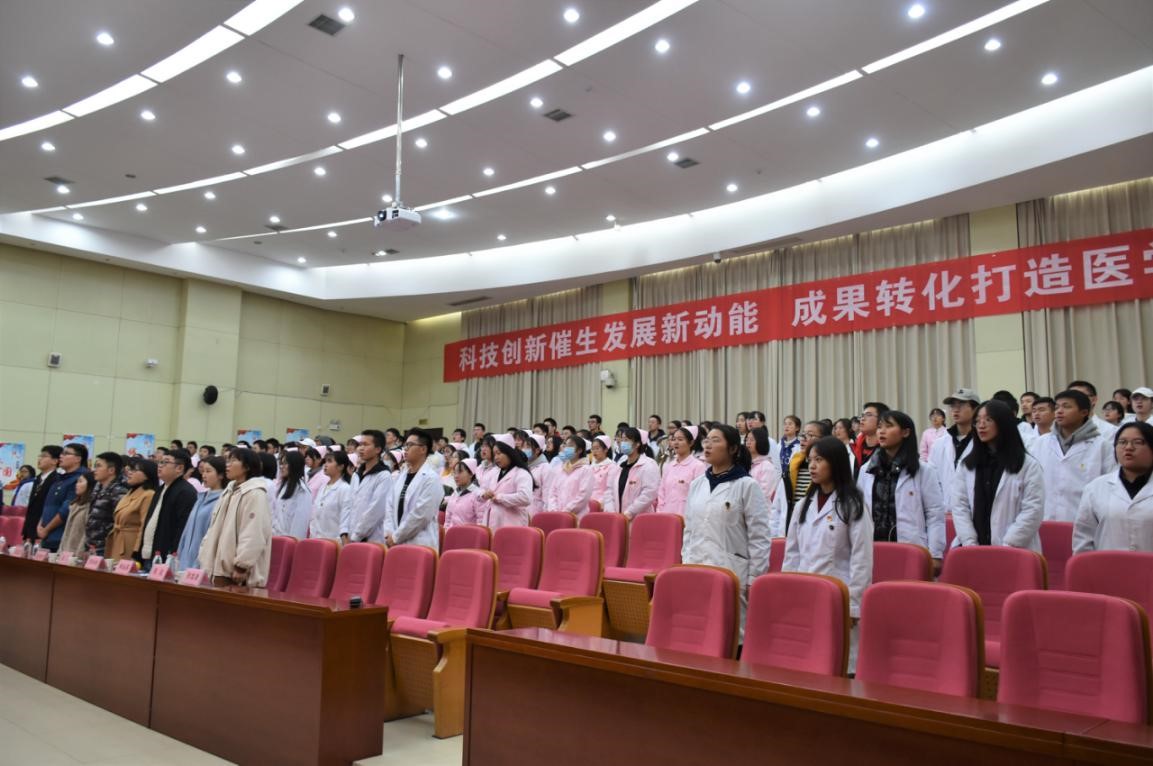 主持人欧阳宇轩致辞,会议在全体起立奏唱国歌中拉开帷幕。王吟致开幕词后,她对我院新入会学生予以热烈欢迎并期待与我院学生携手共进,共同肩负起红十字服务社会的责任。