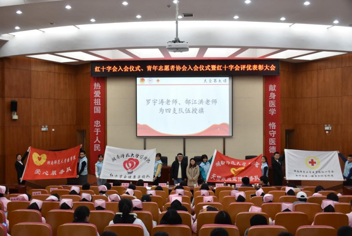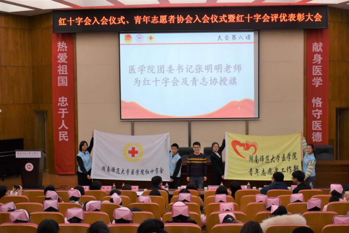 授旗仪式中,张明明为红十字会会员、青年志愿者协会会员代表授旗;罗宇涛、郜江洪为四支队伍队员代表授旗并对新成员表示欢迎。