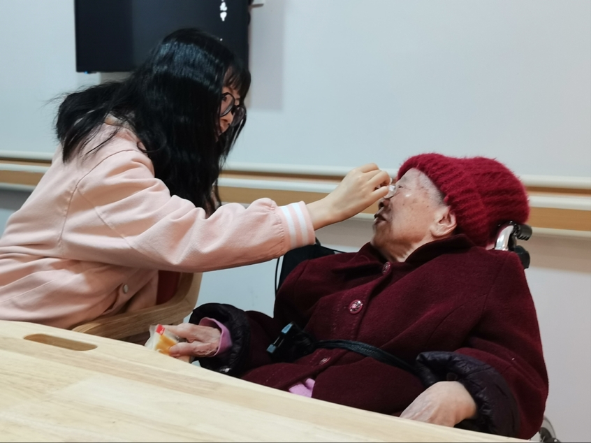 朱思颖同学致开场白表明活动主旨并对老人们致以诚挚的问候。随后,志愿者们分组进行表演并与老人们逐个交谈,询问老人的身体状况及家庭成员情况。老人们也向志愿者们吐露心声,分享自己的生活。其中,有一位湘雅医学院的老教授,他和他的老婆都在这里疗养,教授笑着跟我们说两个人在一起六十年了。两位老人感情一直很好,相濡以沫,相互扶持,在养老中心安度晚年;一位身患肺癌的爷爷谈起了他的病情发展,但是现在在养老中心得到了很好的照顾。他讲到,医生救死扶伤,光荣而又伟大,并对我们寄予厚望,希望我们能够好好学习,为每一名病人带去希望。