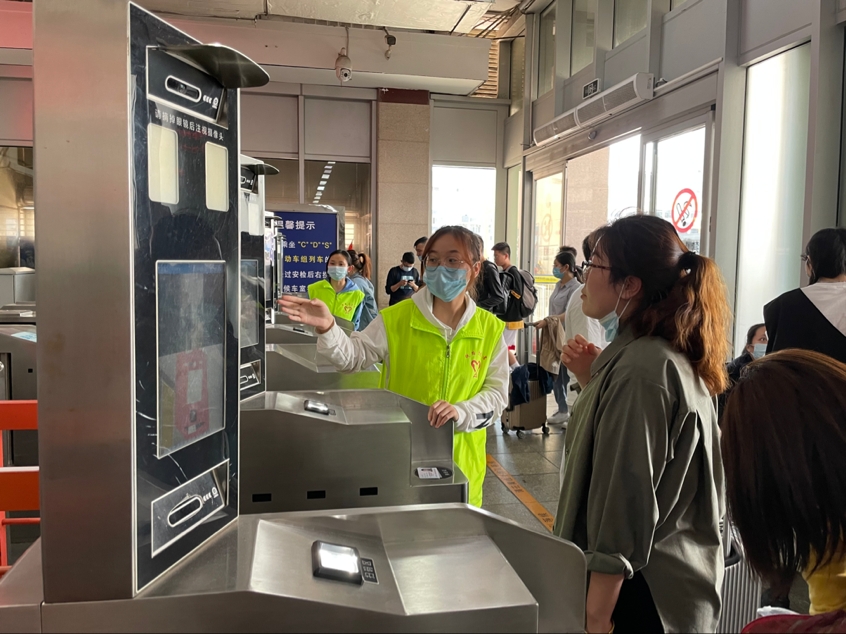 五月一日,正值劳动节,我院青年志愿者工作部组织志愿者前往火车站进行“文明车站行,志愿践新风”志愿者活动。该活动联合长沙火车站星城火炬志愿服务联盟一起开展,在五一假期期间招募志愿者维护车站秩序,进行无纸化客票宣传、旅客购票指引、疫情防控劝导、人脸识别指引、城际转乘指引、新时代文明实践、重点旅客帮扶等志愿服务。
